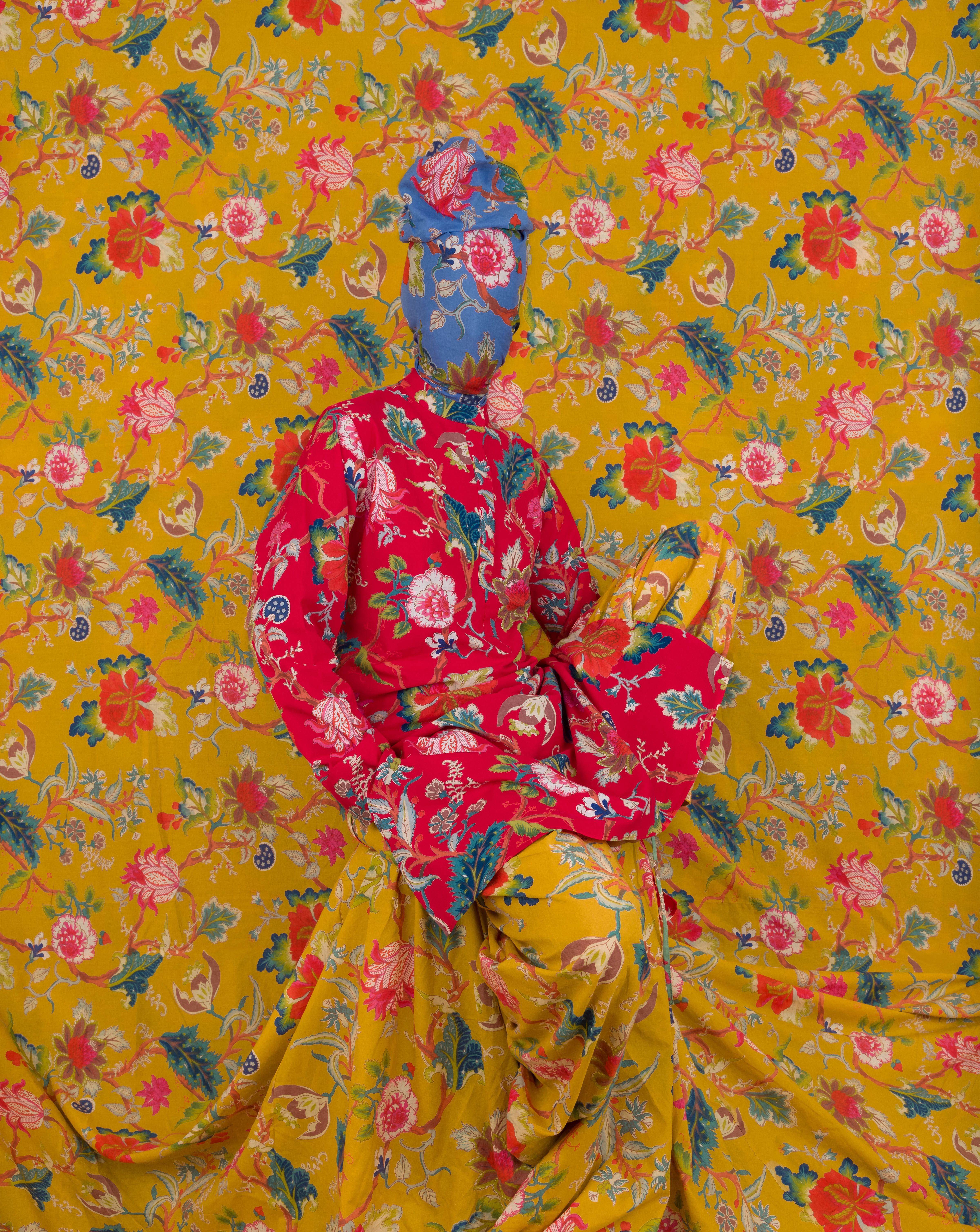 Continuing with the series, a semi-reclining figure in kurta, loose trousers flowing into the frame of yellow that speaks of warm light and ochre sunsets. This is East. Then there is West, perched on a chair, in straight leg trousers and shirt, a pale face, cloth cascading like loose, long blond hair. East and West can stand side by side, or separated by Legend, who orients and re-orients.