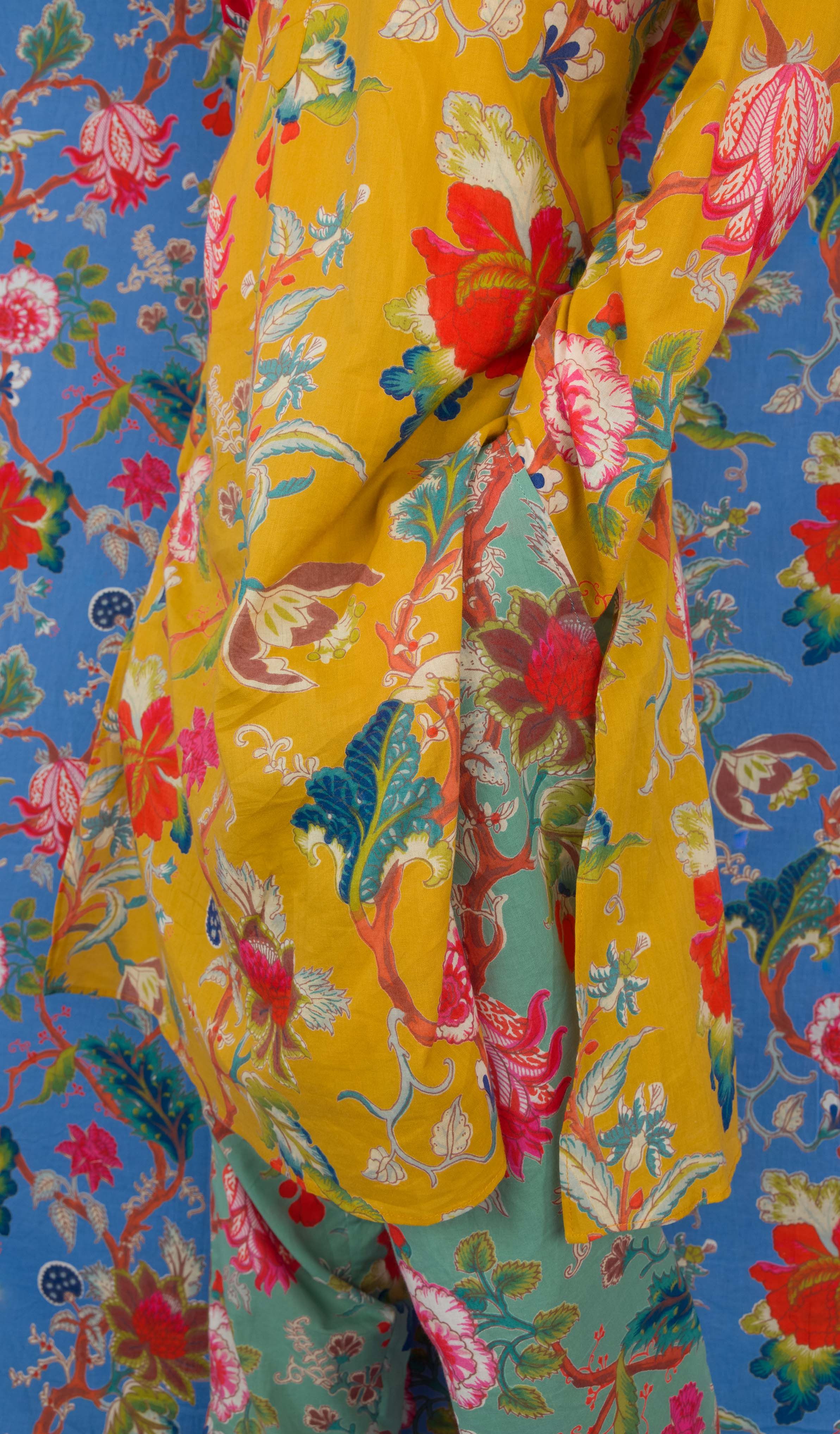 Finally, Fragments I & II form a diptych: two halves of the body, echoing the duality of diaspora. Fragment I is the torso, a floral-patterned shirt. It is only when the viewer sees Fragment II that they perceive the dress as Asian: the kurta is too long to be a shirt, the trousers too full.