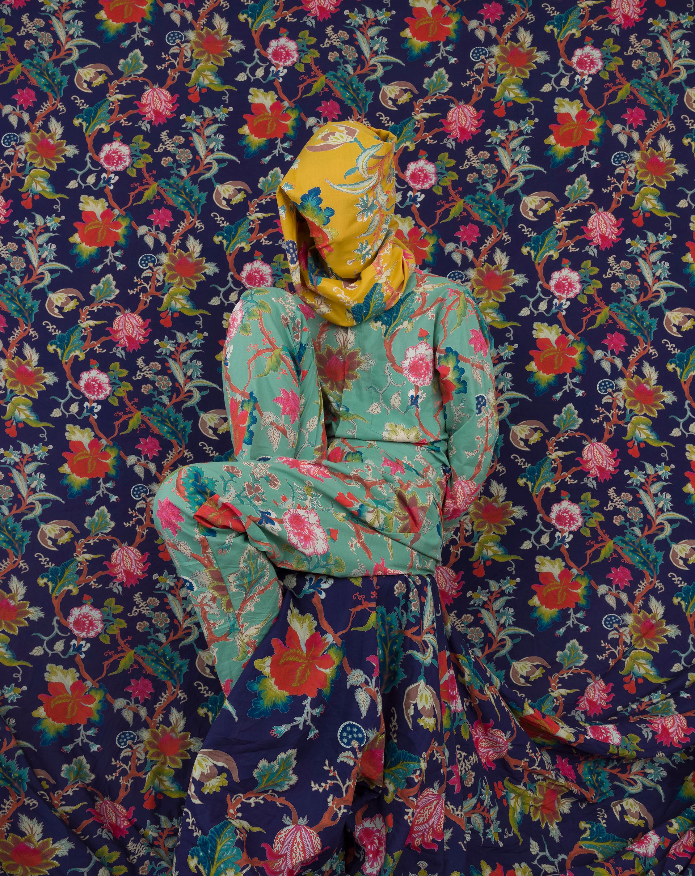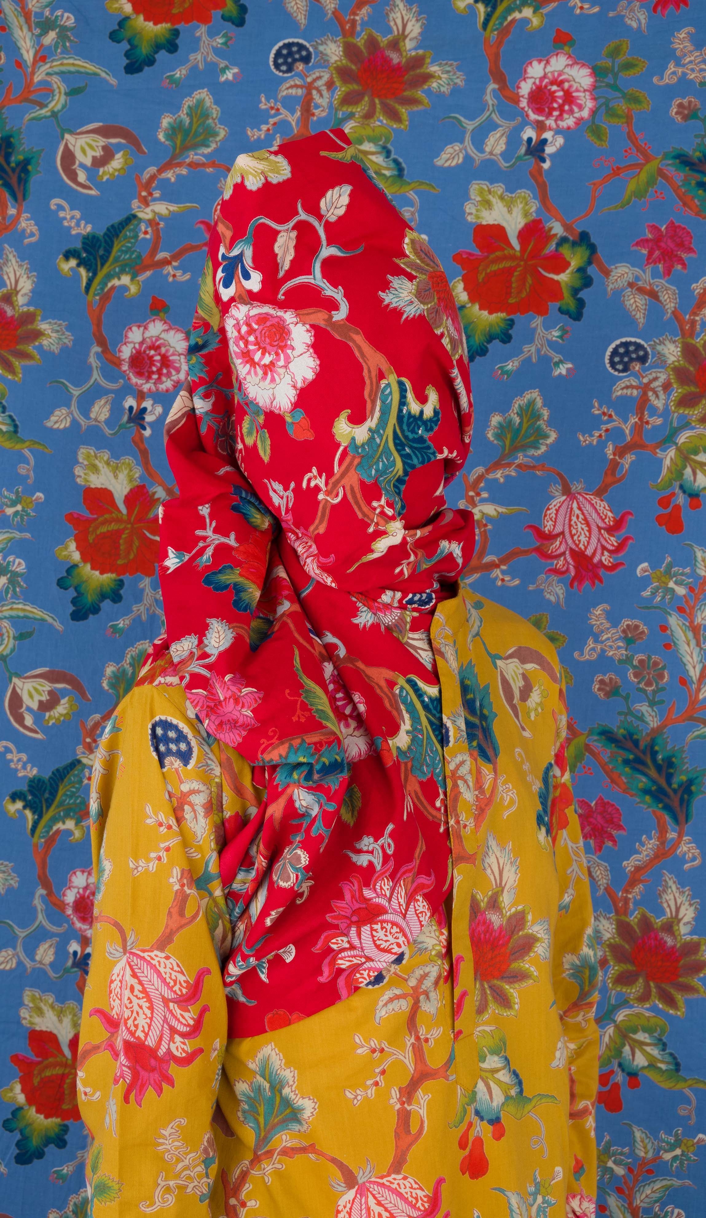 These printed fabrics were custom made to resemble a dress worn by my Yemeni grandmother. The clothing was tailored with the idea of fusing together east and west. While I come from two nations that no longer exist (South Yemen and Yugoslavia), I know my blood is Yemeni and Bosnian. My place of birth is Austria, and I hold passports from Yemen and the US. I cannot ignore that I received an education from the British and the US, my colonizers of the past, and my right to citizenship from the Saudis and the US, who have invaded my homeland.